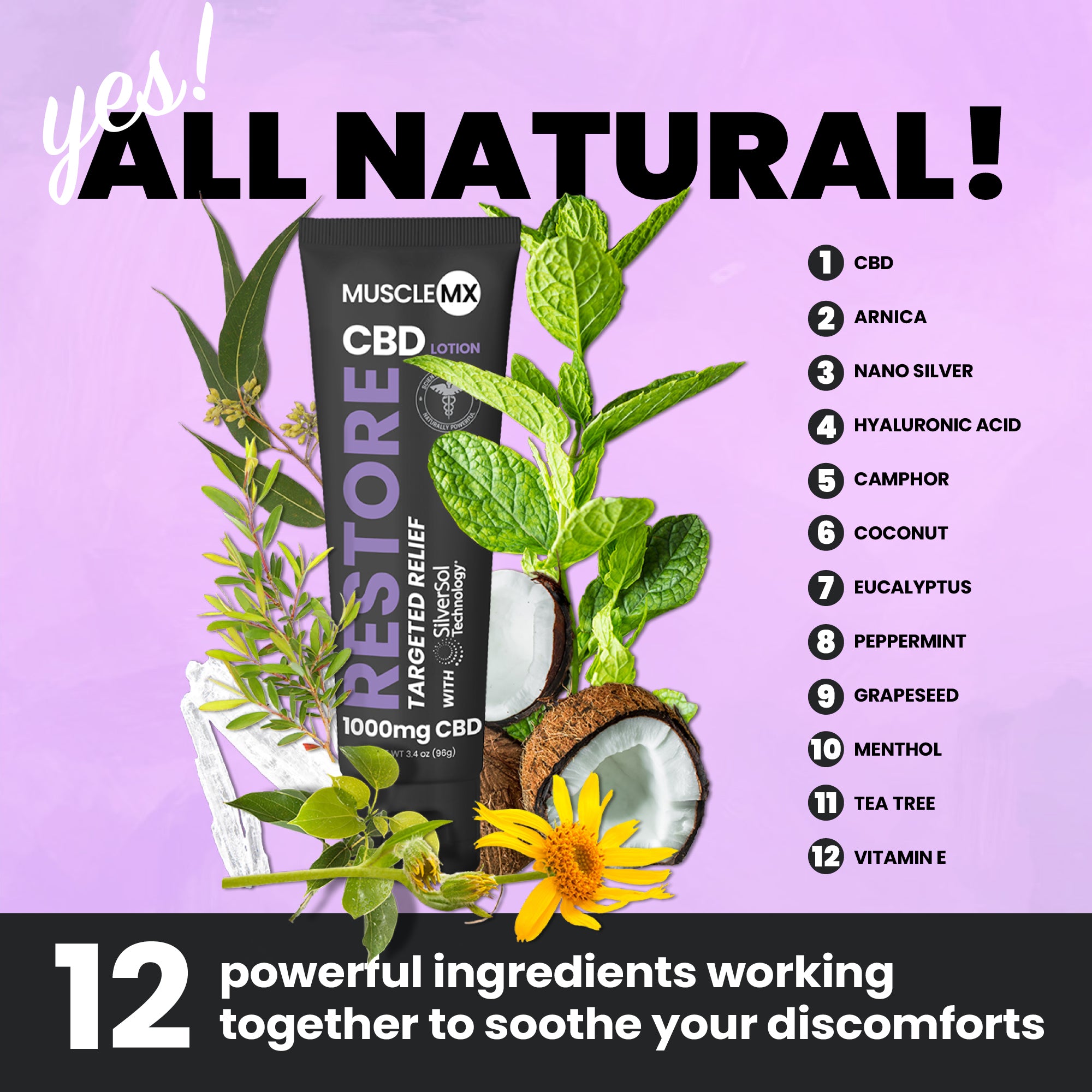 Restore is simply the best on the market. This lotion goes beyond pain relief, offering a complete skin and wellness transformation. This 4-in-1 solution moisturizes, protects, repairs, and relieves. The innovative formula combines powerful CBD to soothe discomfort with nano-silver technology to fight bacteria and promote healing. Deep hydration from hyaluronic acid leaves your skin soft and supple, while advanced ingredients tackle irritation and dryness for healthier-looking skin. Restore offers comprehensive relief and rejuvenation for both your skin and well-being.